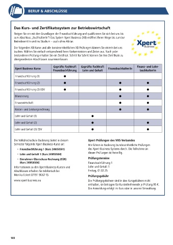 Semester folgende Xpert-Business-Kurse an: Wir führen in Backnang bundeseinheitliche Prüfungen