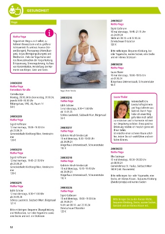 perübungen), Pranayamas (Atemübun- Bitte mitbringen: Bequeme Kleidung, Iso-