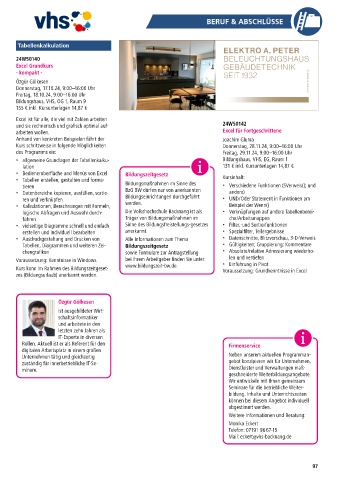 • allgemeine Grundlagen der Tabellenkalku- Bildungshaus, VHS, EG, Raum 1